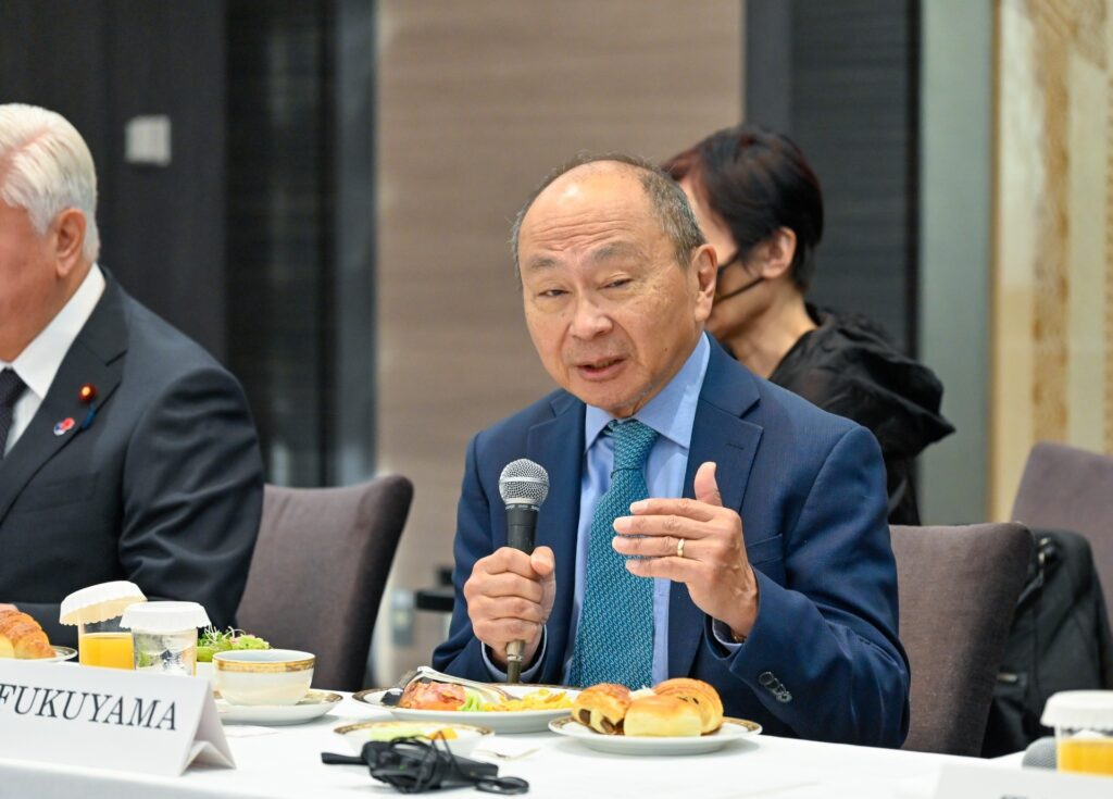 2025年11月18日、日本国際交流センター(JCIE)民主主義の未来プロジェクトでは、同議連との共催のもと、フランシス・フクヤマ教授*との懇談会を開催しました。当日は、中谷元衆議院議員・普遍的価値議連会長、桜井周衆議院議員・普遍的価値議連事務局長をはじめ、普遍的価値議連のメンバーを含む15名の超党派国会議員が参加し、約1時間にわたり活発な意見交換が行われました。